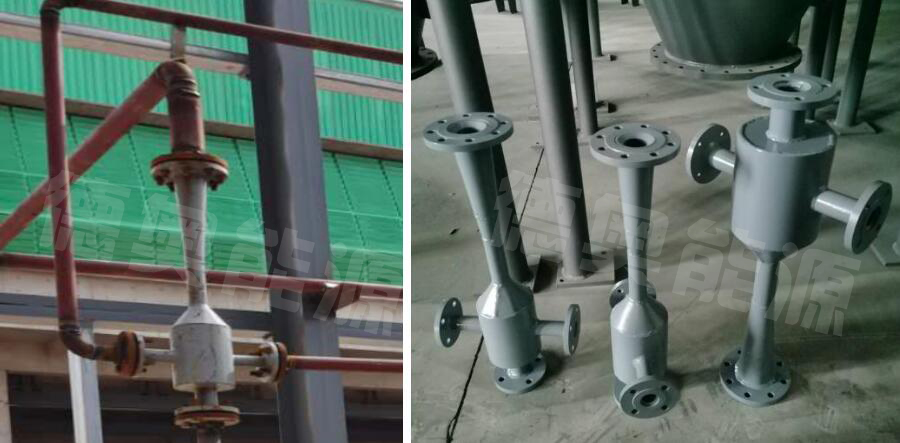 噴射加壓裝置、引射裝置等。在凝結水回收過程中,會產生大量的二次蒸汽及過流蒸汽。為了回收這部分低壓蒸汽,通常利用高壓蒸汽或熱水通過噴射加壓裝置與低壓蒸汽混合加壓后再加以利用。