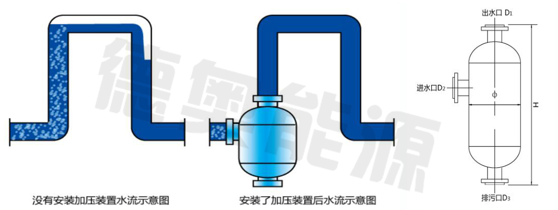● 安裝位置:在管道低點或水平管道提升處。四、設備選型須知